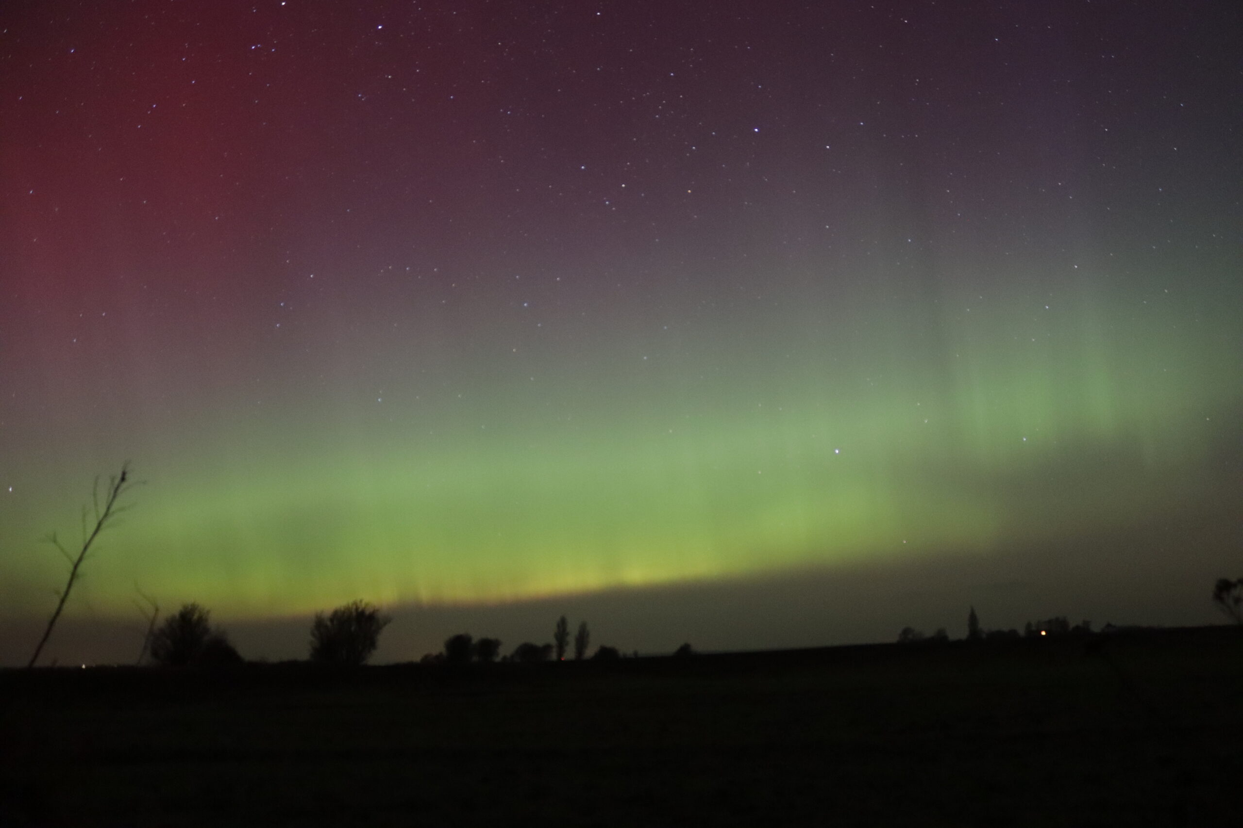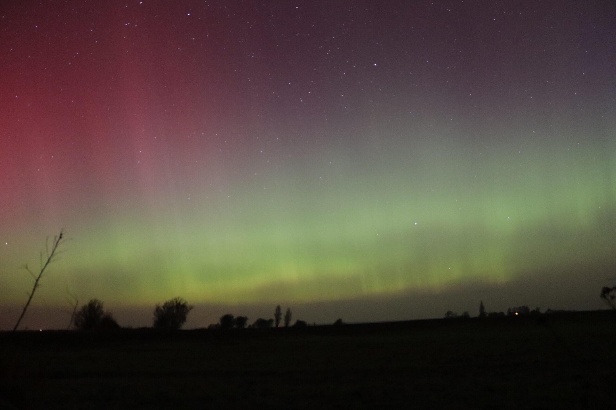 Jeg var ude efter en lang aften med arbejde, fordi min telefon gjorde opmærksom på at der var stor mulighed for at se nordlyset, og jeg skal lige love for at det skete da jeg havde ventet bare 10 minutter fra jeg ankom til at himlen bare lyste op og farverne bare dansede over himlen. Den grønne farve var mere grå end den var grøn, men da først den røde farve var fremme var det ikke et problem at se det med det blotte øje.